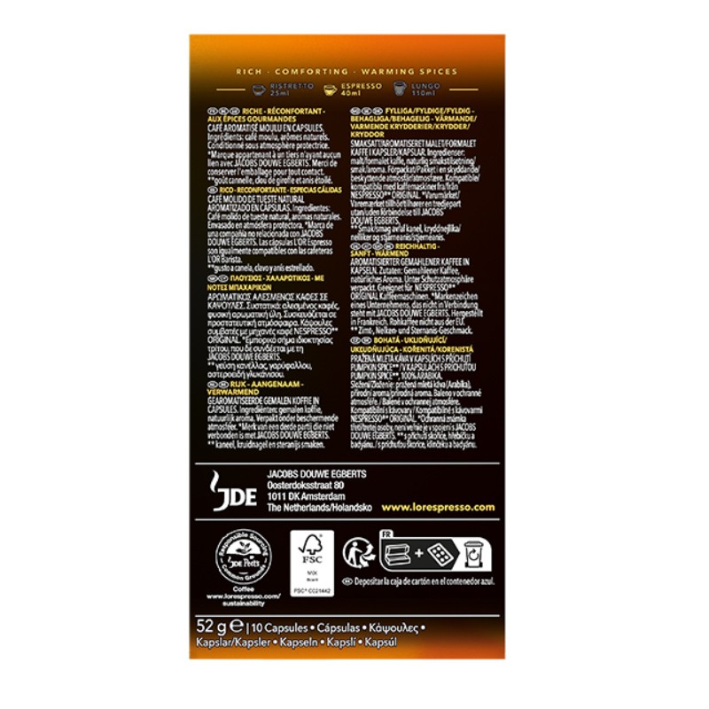 Бережно созданы мастерами кофе L’OR, чтобы соединить оттенки осенних специй с глубиной и интенсивностью эспрессо, оставляя насыщенное и мягкое послевкусие. Кофе, который пробуждает ощущение и окутывает теплом в прохладное осеннее утро.